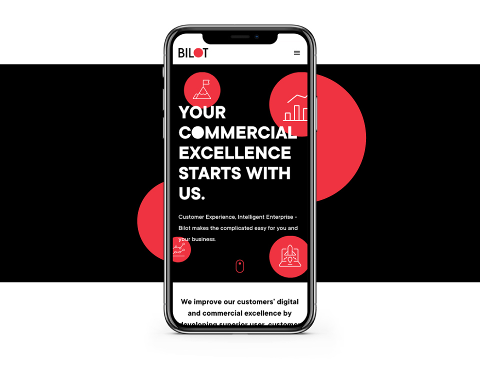 Bilotin brändi-ilmeen vahva elementti täytetty punainen O-kirjain. Työmaa, joka suunnitteli sivuston visuaalisuuden, sai onnistuneesti sisällettyä O:n graafisesti eri väreissä ja läpi sivuston. Vahvat ja rohkeat värivalinnat ja hienot kuvat tekevät sivuston ilmeestä modernin, kiinnostavan ja ammattimaisen – kuitenkin pilke silmäkulmassa. Liikkuvat elementit ja ikonit tuovat leikkisyyttä sivustoon. Bilotilla on toimintaa Suomen lisäksi Puolassa ja Ruotsissa. Tavoitteena oli myös kasvaa ja lisätä markkinointia ulkomailla, joten Bilotin sivuille tehtiin omat kieliversiot kohdemaihin. Näin voidaan markkinoida ja jakaa esimerkiksi ruotsiksi kirjoitettuja asiakastarinoita tai blogeja suoraan ruotsalaisille asiakkaille. Kieliversioita voi WordPressissä lisätä useita ja niiden linkittäminen toisiinsa on helppoa. Eri kielten päivittäminenkin onnistuu helposti backendissä. Loimme valmiiksi sivupohjia, joille asiakas on voinut itse lisätä sisältöä WordPressin Gutenberg-editoria käyttäen.