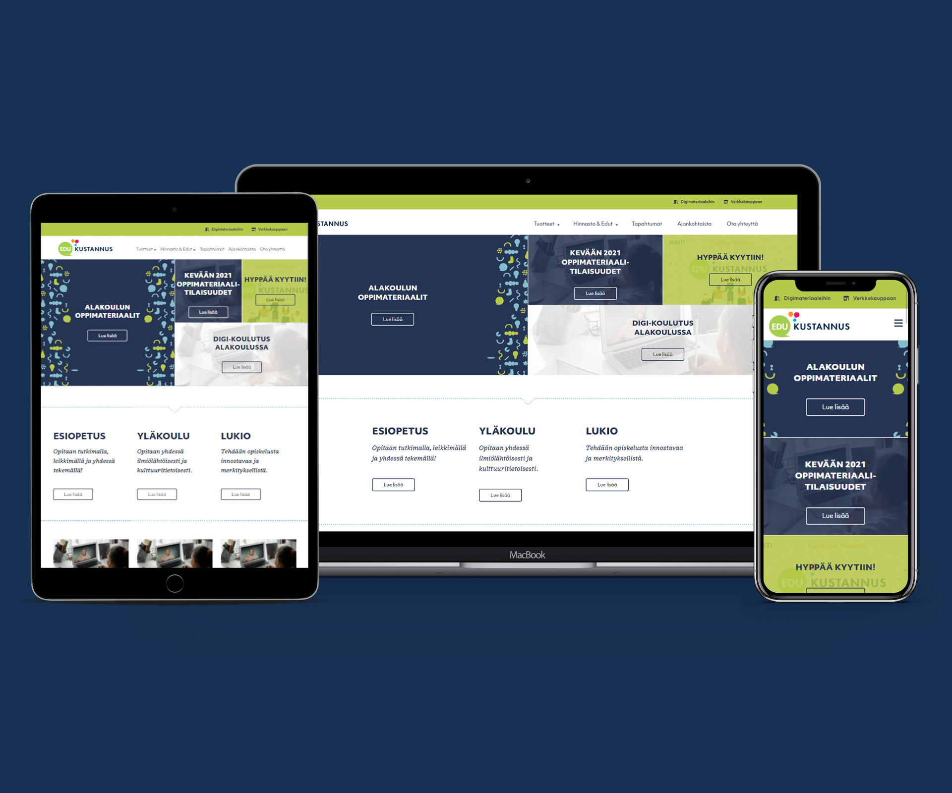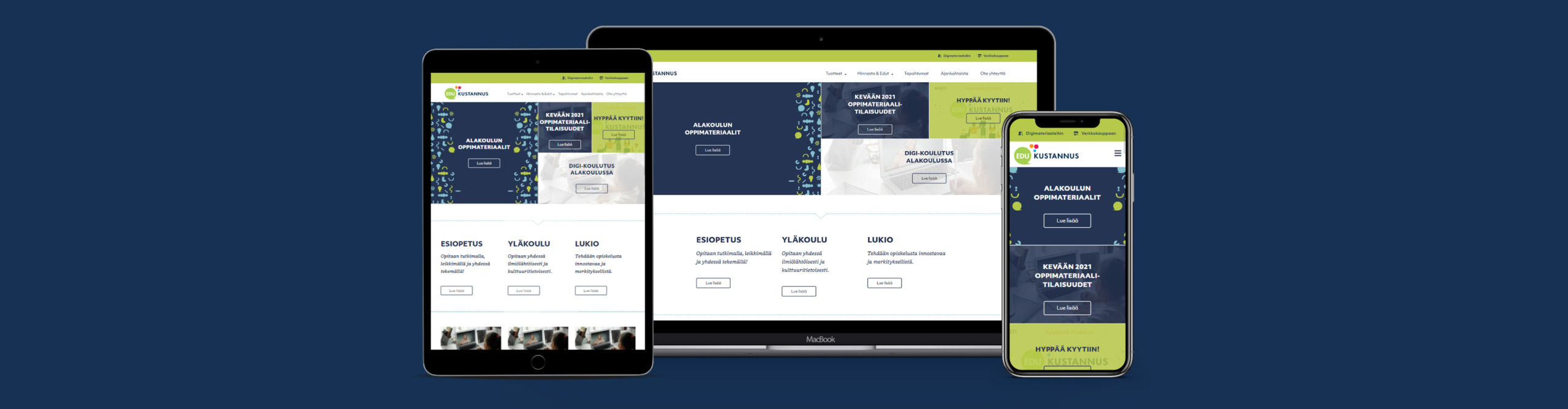 Edukustannuksen uudesta sivustosta tuli selkeä ja helppokäyttöinen kokonaisuus, joka palvelee paitsi kohderyhmäänsä myös ylläpitäjiään entistä selvästi helpommin ja kattavammin. Yhteistyö sujui erinomaisesti ja siten myös aikataulu pysyi ennakoiduissa raameissa. Sivusto toistaa brändi-ilmettä onnistuneesti ja tunnistettavasti ja toimii entistä monipuolisempaa julkaisualustana Edukustannuksen tuotteille.