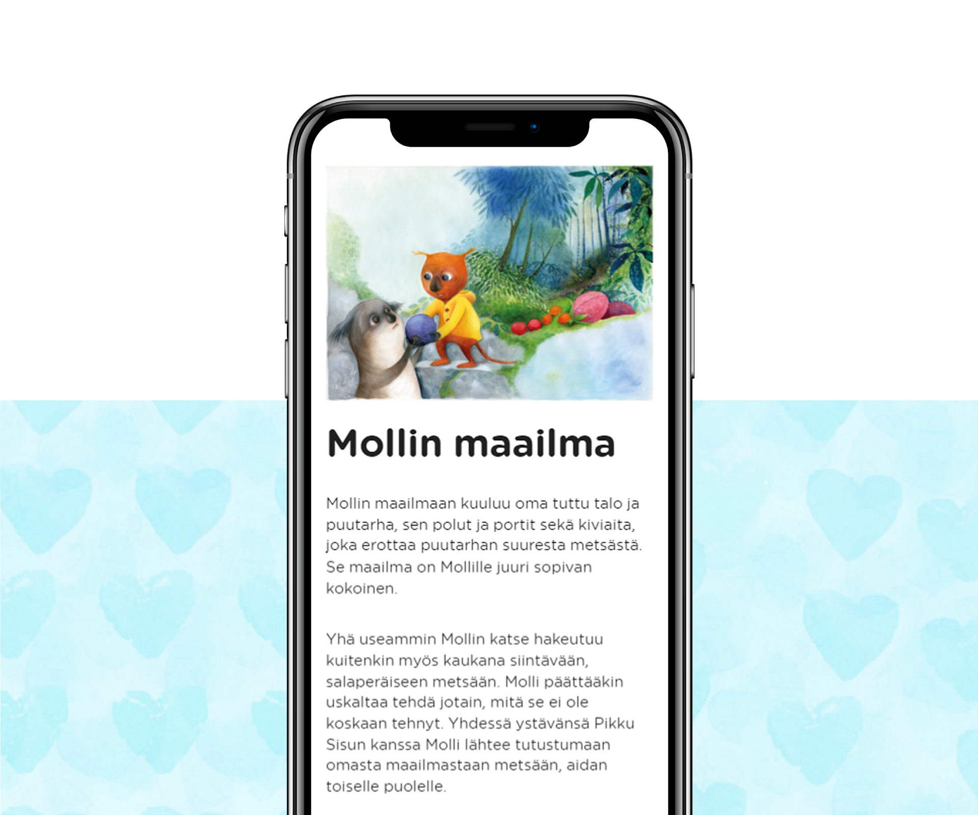 Molli-kirjoja kustantava Lasten Keskus halusi uudistaa Mollin verkkosivun, jotta se palvelisi paremmin kohderyhmiään, eli lapsia, heidän läheisiään, sekä ammattikasvattajia. Erityisesti pienten lasten ja heidän vanhempiensa toivotaan löytävän näin Mollin maailmaan ja Molli-kirjojen pariin. Oli itsestään selvää, että sivustosta tulisi saavutettava ja responsiivinen, mutta lisäksi siihen haluttiin tuoda mukaan Mollin omaa maailmaa leikkisänä visuaalisuutena.