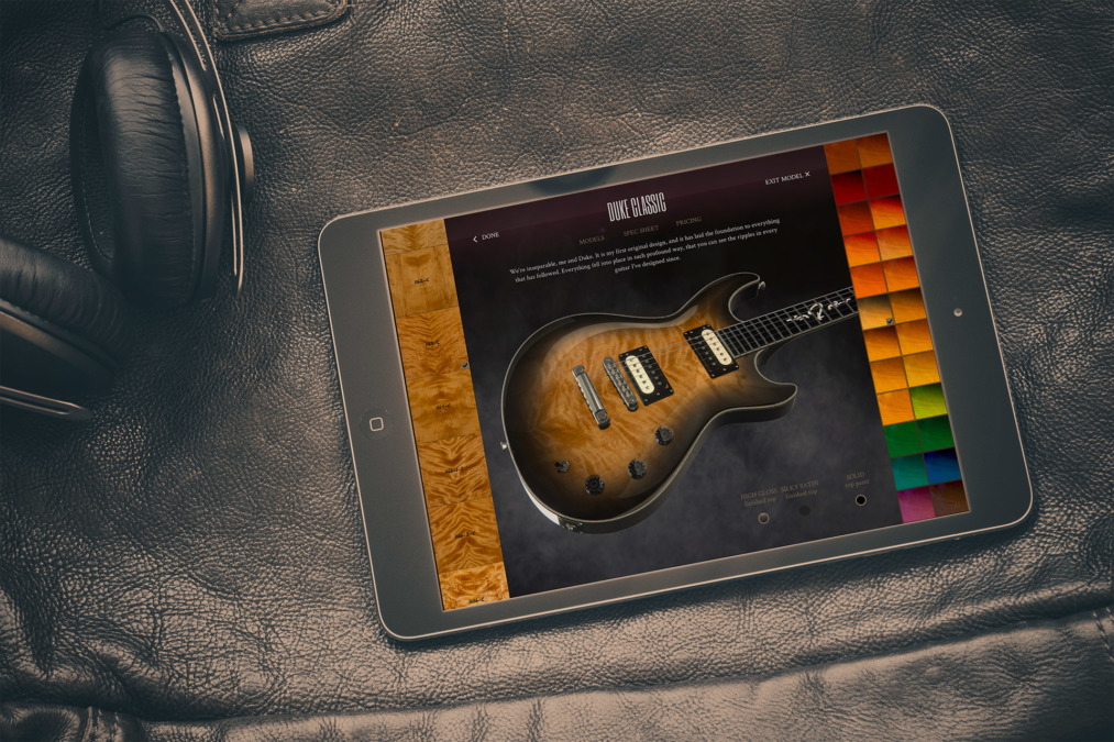 Muokkasimme verkkosivuston kokonaan uuteen uskoon, ja Guitar Builder -työkalu päivitettiin 3D-versioon ja nimettiin uudelleen Guitar Creatoriksi. Asialleen vihkiytyneet kitaristit voivat nyt uppoutua ainutlaatuiseen kokemukseen, joka koostuu kiehtovista tarinoista, videoista, kuvista ja lukemattomista innoituksen lähteistä. 3D Guitar Creatorilla asiakas voi räätälöidä kitaransa ominaisuudet asiantuntevasti valikoiduista ja hyvin yksityiskohtaisista vaihtoehdoista. Guitar Creator toimii Apple- ja Windows-tietokoneilla sekä Apple- ja Android-mobiililaitteilla, ja kokemus huipentuu virtuaalilaseja käyttämällä.