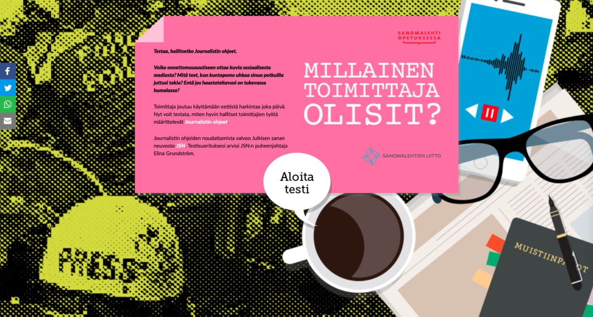 Olemme tehneet esimerkiksi Sanomalehtien Liitolle testin, jossa voi kokeilla journalistin ohjeiden osaamista.