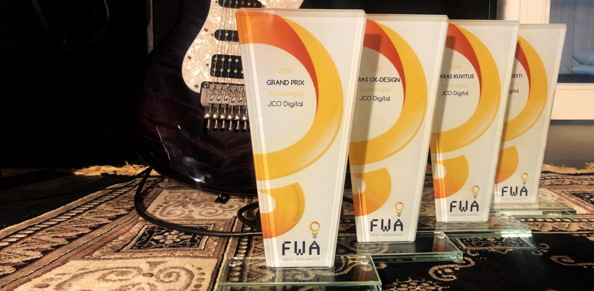 Kitararakentaja Juha Ruokankaan verkkosivusto ruokangas.com voitti vuoden 2019 Finnish Web Awards -kilpailun Grand Prix -pääpalkinnon sekä sarjavoitot kuvituksessa, tekstissä ja UX-designissa.